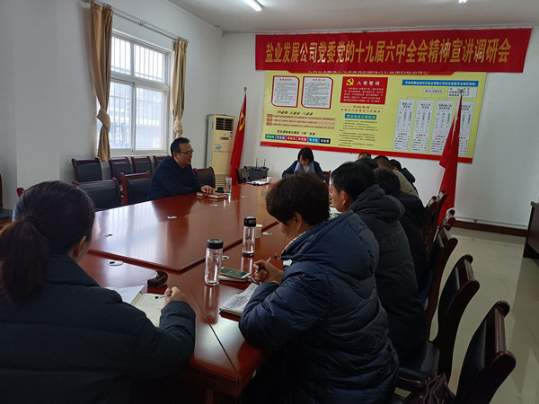 1月13日至15日,集團公司黨委委員、副總經(jīng)理,發(fā)展公司黨委書記、執(zhí)行董事、總經(jīng)理王奇赴阜陽、淮北、宿州鹽業(yè)公司宣講黨的十九屆六中全會和省第十一次黨代會精神,結(jié)合工作實際開展調(diào)研,并召開鹽業(yè)發(fā)展公司黨委黨史學習教育專題民主生活會前征求意見座談會。阜陽、淮北、宿州公司中層以上人員及縣公司經(jīng)理參加。