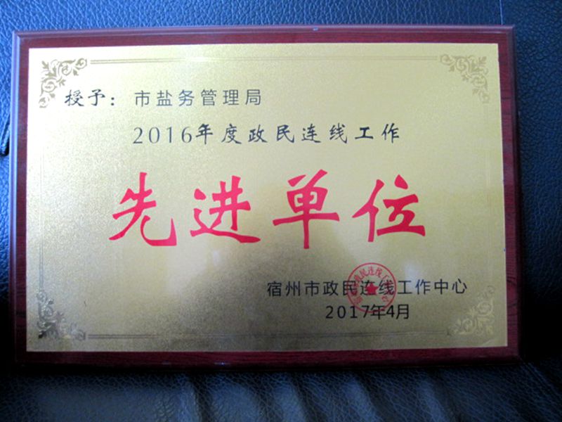 近日,宿州市政民連線工作中心通報(bào)表彰了2016年度全市政民連線工作先進(jìn)單位和個(gè)人,宿州市鹽務(wù)局被授予“2016年度政民連線工作先進(jìn)單位”稱號(hào)。
