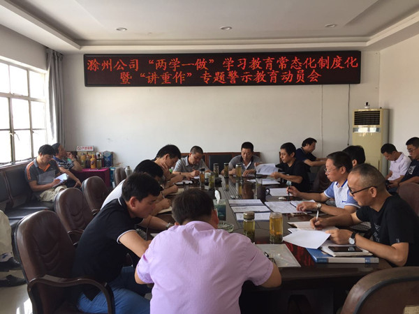 滁州公司召開(kāi)“兩學(xué)一做”學(xué)習(xí)教育常態(tài)化制度化暨“講重作”專題警示教育動(dòng)員會(huì)