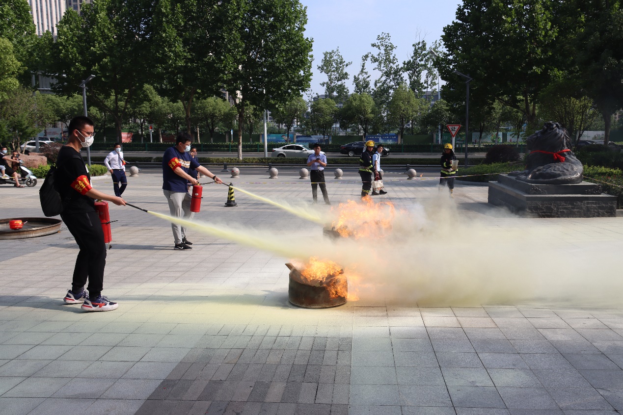 疏散完成后,工作人員現(xiàn)場講解了辦公區(qū)域常見火災(zāi)發(fā)生的規(guī)律和特點(diǎn),以及常見的滅火器類型與撲救方法等,并通過實(shí)驗(yàn)的方法演示了泡沫滅火器的運(yùn)作規(guī)律。之后,20余名員工在工作人員的指導(dǎo)下,實(shí)際體驗(yàn)了使用滅火器滅火的操作,幫助大家進(jìn)一步加深了印象。