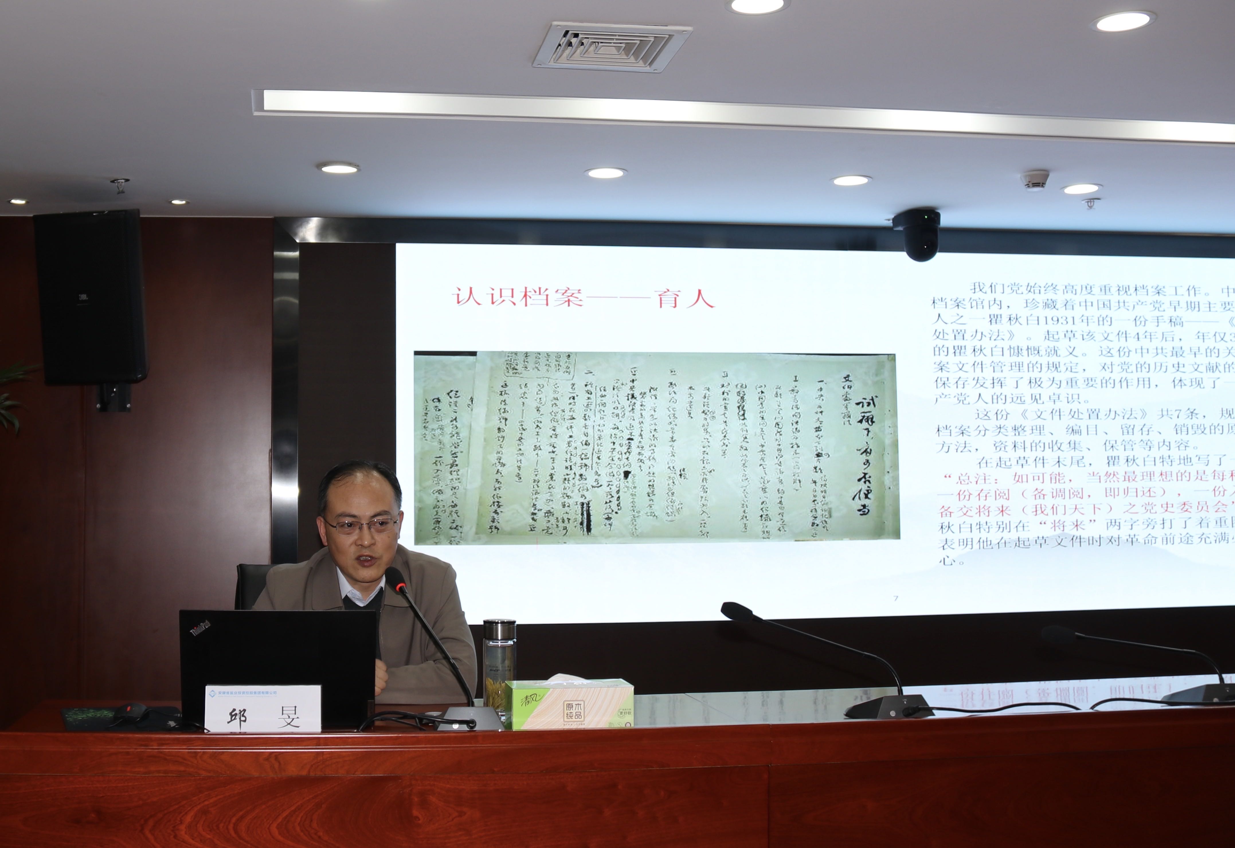 本次培訓(xùn)邀請(qǐng)到省委辦公廳檔案管理一處處長(zhǎng)、一級(jí)調(diào)研員邱旻,為大家作“強(qiáng)化法治思維提升企業(yè)檔案工作規(guī)范化管理水平”專題授課。課程圍繞習(xí)近平總書(shū)記對(duì)檔案工作重要批示指示精神,解讀新修訂的檔案法內(nèi)容與特點(diǎn),就如何落實(shí)檔案工作責(zé)任制、健全檔案管理相關(guān)制度、明確歸檔范圍和保管期限、推動(dòng)檔案開(kāi)放與利用、加強(qiáng)檔案信息化建設(shè)等進(jìn)行輔導(dǎo)。本次培訓(xùn)主題鮮明、內(nèi)容豐富、事例生動(dòng)、旁征博引,既有理論高度、又有實(shí)踐深度,具有很強(qiáng)的理論性,指導(dǎo)性和可操作性。