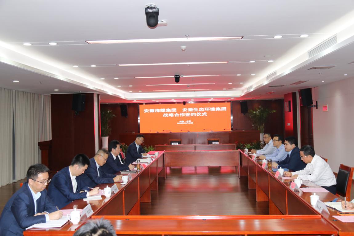 省生態(tài)環(huán)境集團(tuán)黨委委員、副總經(jīng)理王奇,海螺集團(tuán)黨委委員、副總經(jīng)理吳斌代表雙方簽署戰(zhàn)略合作協(xié)議。安徽環(huán)境科技集團(tuán)、安徽順朝公司、海螺水泥、海螺環(huán)保以及雙方有關(guān)部門負(fù)責(zé)同志參加會(huì)議。