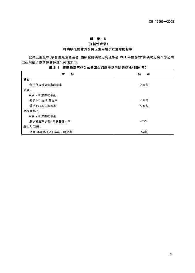 衛(wèi)生部國標(biāo)委發(fā)布GB16006-2008碘缺乏病消除標(biāo)準(zhǔn)
