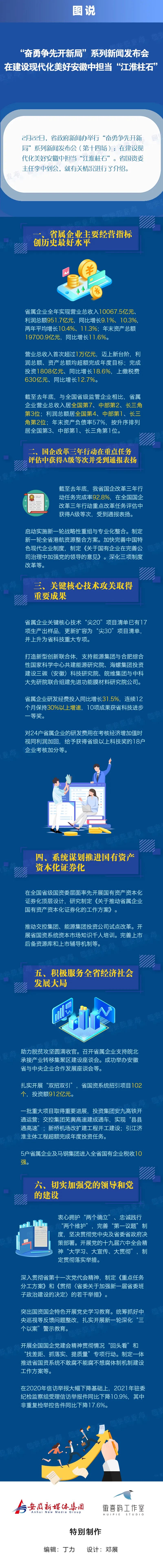 2月22日(周二)下午3點,省政府新聞辦召開 “奮勇爭先開新局”系列新聞發(fā)布會(第十四場):在建設(shè)現(xiàn)代化美好安徽中擔(dān)當“江淮柱石”,省國資委主任李中出席發(fā)布會,介紹省國資國企高質(zhì)量發(fā)展的情況,并回答記者提問。省委宣傳部新聞發(fā)布處處長汪曄宇主持新聞發(fā)布會。