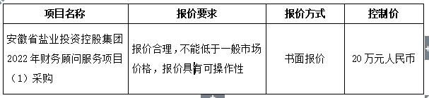 1.項目名稱:安徽省鹽業(yè)投資控股集團2022年財務(wù)顧問服務(wù)項目(1)