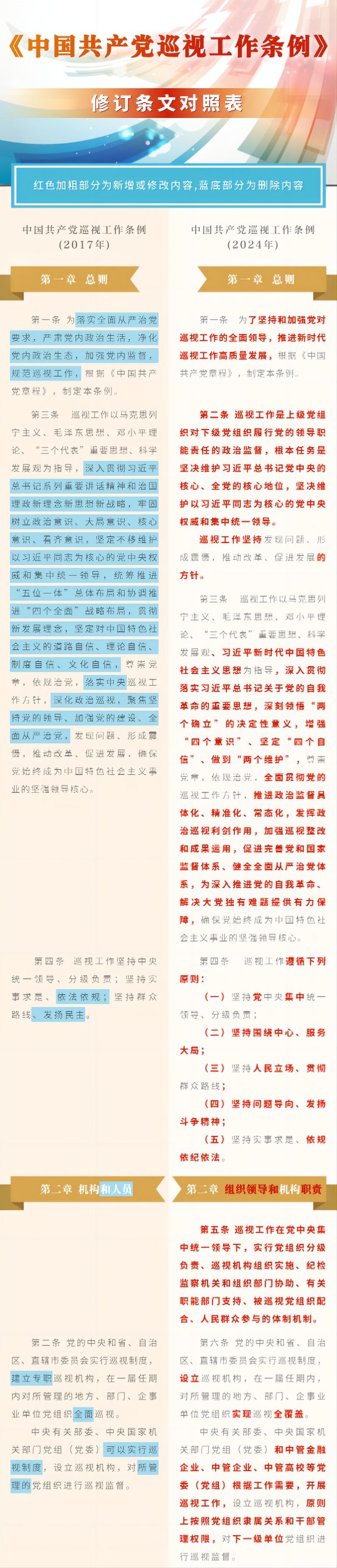 《中國(guó)共產(chǎn)黨巡視工作條例》修訂條文對(duì)照表