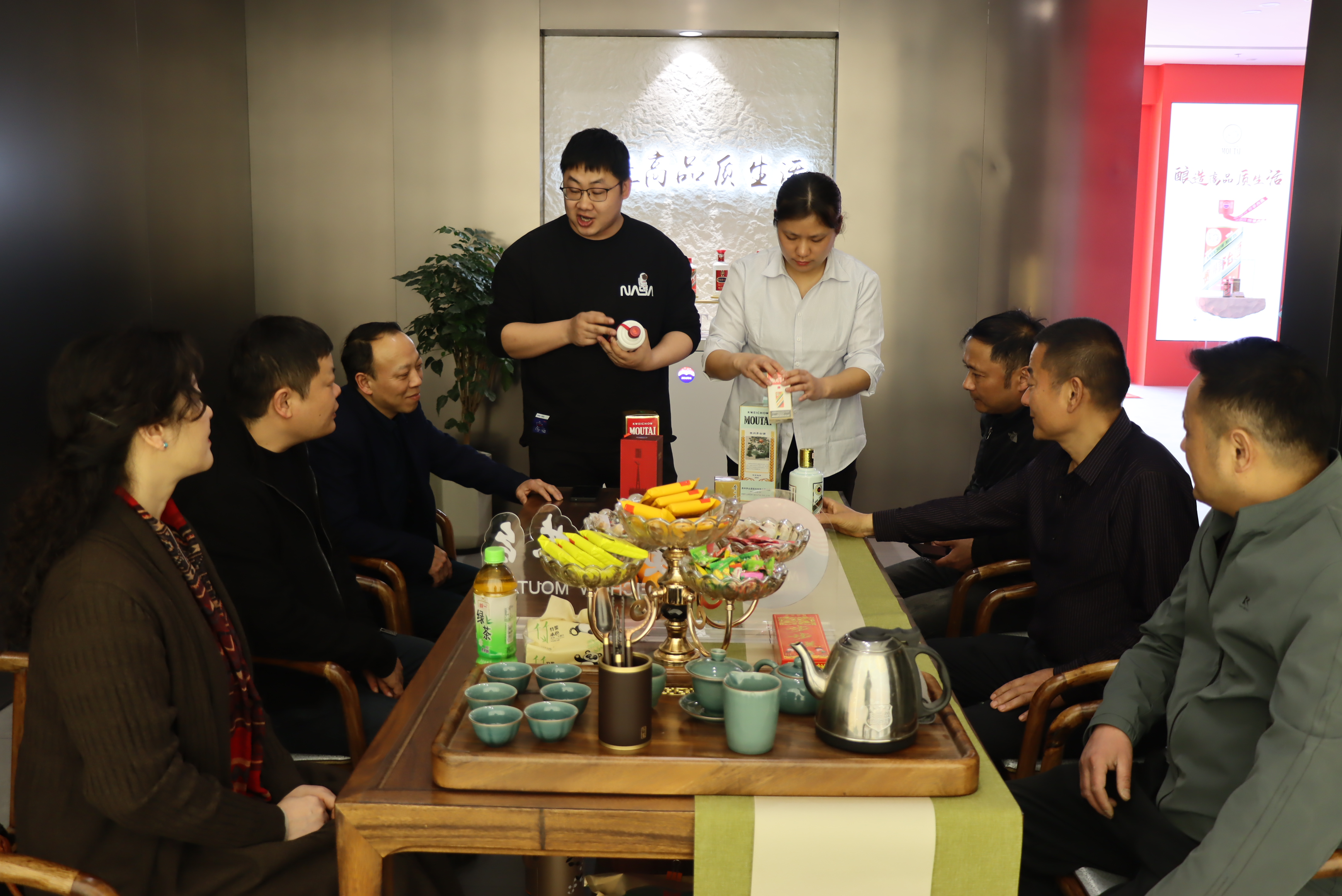 活動(dòng)中,專賣店店員為客戶們詳細(xì)介紹了i茅臺(tái)線上產(chǎn)品,宣傳茅臺(tái)知識(shí),貴州茅臺(tái)酒品質(zhì)卓越,具有“醬香突出、幽雅細(xì)膩、酒體醇厚、回味悠長、空杯留香持久”的酒體特點(diǎn),茅臺(tái)酒的香氣特征被剖析為9大類香氣,包括:花香、水果香、青草香、甜香、焙烤香、干植物香、醬香、酸香及其它香氣,這些呈現(xiàn)不同香氣特征的物質(zhì)組成了茅臺(tái)酒復(fù)雜的香氣特征。其以獨(dú)特高品質(zhì)的釀造工藝成為中國白酒的“活化石”。中國大曲醬香型的代表和鼻祖。在中國酒文化中占據(jù)極為重要的地位。
