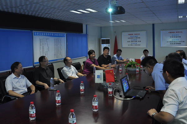 詹先豪一行聽取中建八局項目經理就有關工程進度匯報