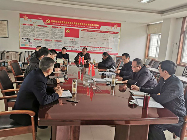 2月24日至26日,鹽業(yè)發(fā)展公司黨委書記、執(zhí)行董事、總經(jīng)理王奇,副總經(jīng)理江南一行先后赴阜陽(yáng)、蚌埠、懷遠(yuǎn)、淮南、壽縣鹽業(yè)公司調(diào)研督導(dǎo)工作。