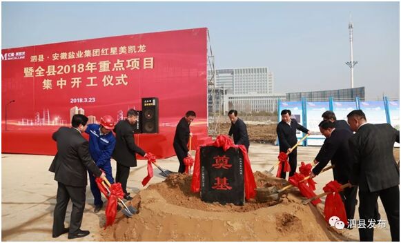 3月23日上午,泗縣縣委縣政府在徽鹽·虹都府項(xiàng)目紅星美凱龍地塊隆重舉行泗縣·安徽鹽業(yè)集團(tuán)紅星美凱龍暨全縣2018年重點(diǎn)項(xiàng)目集中儀式??h領(lǐng)導(dǎo)張志強(qiáng)、王法立、趙朝法、龐壯、趙明等四大班子成員、安徽鹽業(yè)集團(tuán)徽鹽地產(chǎn)領(lǐng)導(dǎo)程群、泗縣項(xiàng)目全體人員及縣直有關(guān)單位、40個(gè)集中開工項(xiàng)目負(fù)責(zé)人等出席了奠基儀式。
